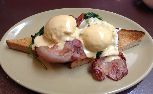 さて今回私たちがレストランに着いたのは午前中でしたので、朝ごはんのメニューの中からフレンチトーストとエッグベネディクトを注文しました。定番メニューではありますが、おいしくいただきました。