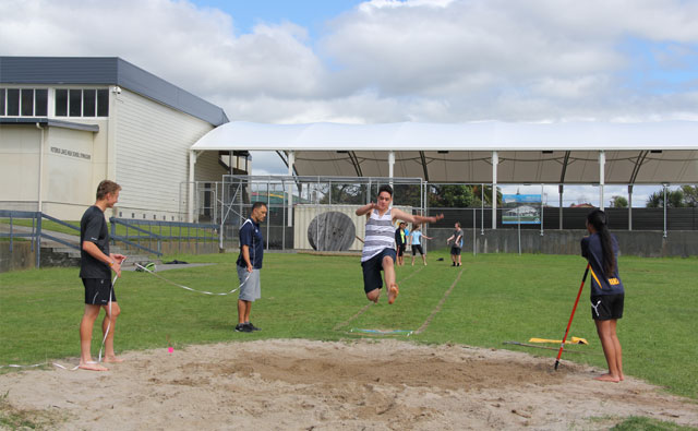 Adventure Education Level 2の授業では、Year12の学生たちが幅飛びをし、記録をつけていました。幅飛び、高飛び、砲丸投げなどいくつかの種目で記録をとり、それをまとめて身体能力のレポートをする授業です。