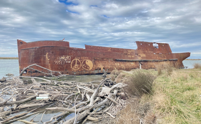 ウェイバリー号という名の難破船で、昔は物資を運び北島と南島を往復していたそうです。今では自然の一部と化し、海鳥達の隠れ家になっています。