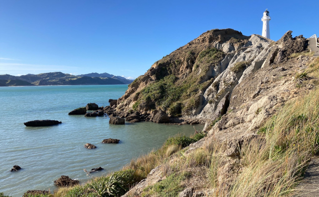 ウェリントンから北へ3時間以上車を走らせないといけないかなり遠い場所ですが、それでも行く価値のある絶景ポイントです。真っ白な灯台が美しいビーチに立っており、いつまでも見ていたくなる景色です。岩肌には、貝殻が埋っており、かつては海の底だったことがわかります。灯台までの道は、ビーチになっているので、濡れてもいい靴で行った方がいいです。