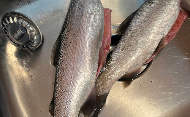 こちらではサーモンが養殖されているが、よくサーモンが囲いネットから逃げてしまうと言うこと。