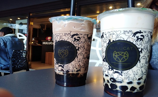 シビックシアターの角にあるHulu catは、一時期、連日行列ができていたタピオカドリンクのお店です。こちらも人気の台湾スイーツです。僕が行った日は雨だったからか、並んでいる人はいませんでしたが、数組のカップルがイートインのスペースに座っていました。オーダーするときに、砂糖と氷の有無を聞いてもらえます。写真は、オリジナルミルクティーのタピオカ入りと、チョコレートミルクティーのグラスジェリー入りです。飲み切れなかったので持って帰ったら、次の日、タピオカがかたくなっていて驚きました。時間がたったら固くなるなんて知らなかったので、発見でした。容器がかわいいので、女性受けもいいと思いました。オーダーや配達も別のロケーションから行っているようですので、こちらも利用してみてください。