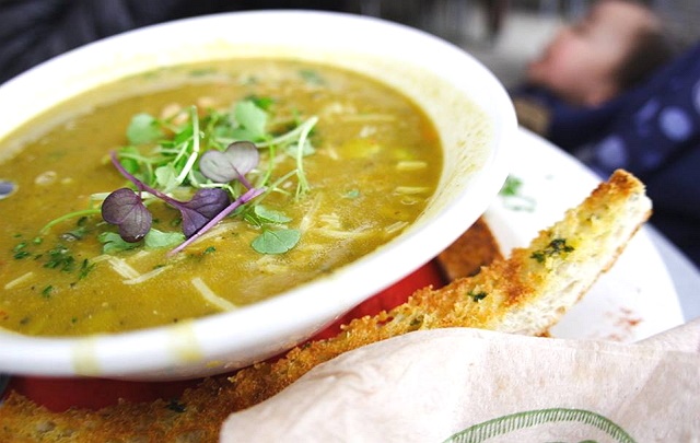 スープオブザデイはカレー風味のスープにガーリックトーストが添えられていました。
