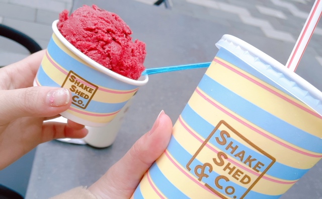 次にご紹介するところはなんとピザ屋さん!ピザ屋さんですが、私のお目当てはドーナツの乗ったボリュームありあまるこのシェイク!