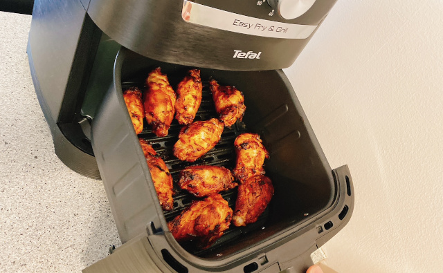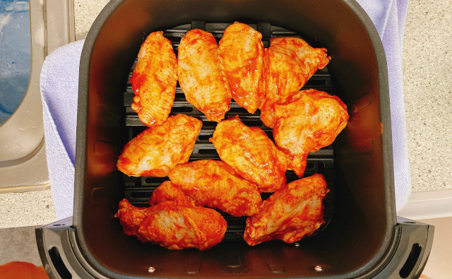 我が家ではそれでやりました!グリル機能もついているものなので、余分な油が下に落ちてくれてジューシーでとても美味しいバッファローチキンが出来上がりました。