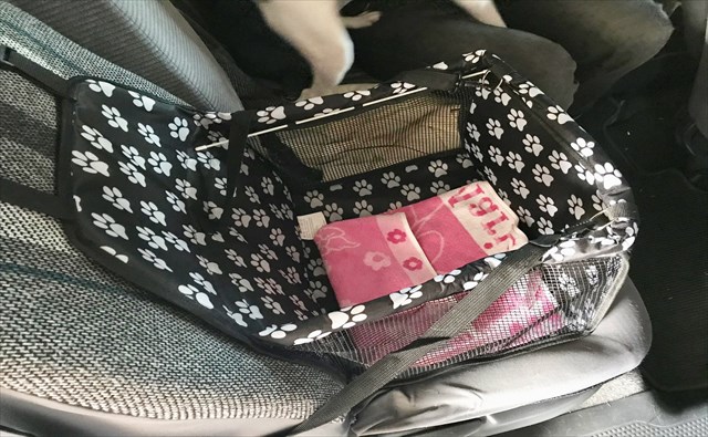 ニュージーランドでは犬を連れて外出することも多いでしょう。車内では、小さな子供同様シートに固定しておくと安全です。これは小型犬のカーシートです。座席も汚れないので便利ですね。