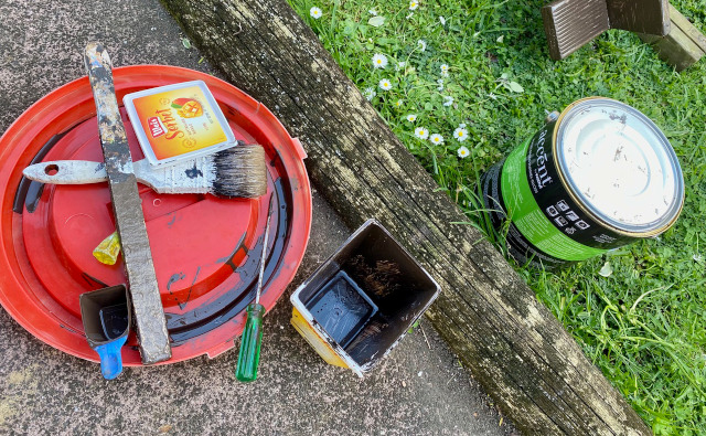 ペンキは直接大きな缶から塗るのではなく、使い捨てできるコンテナーなどに小出しして使います