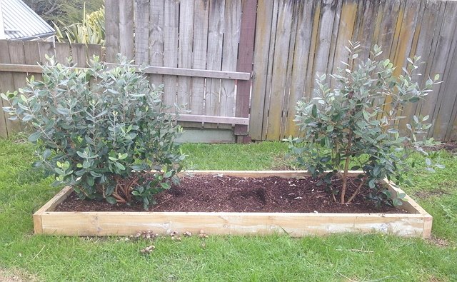 枠をこうやって作ると、見た目がすっきり見えることはもちろんですが、管理がしやすくなります。栄養を与えたり、雑草を取り除いたりも最低限この枠内はこまめにしてあげましょう。フィジョアは実が熟すとポトポト落ちるので、この枠内をチェックして食べごろのフィジョアをいただきます。